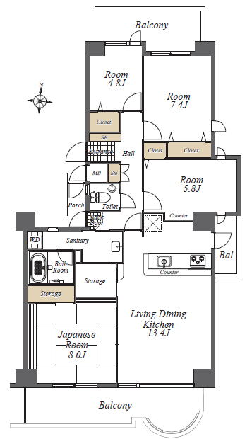3面バルコニー